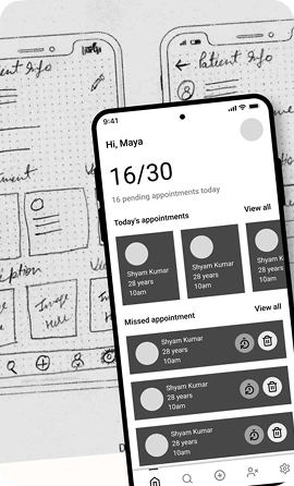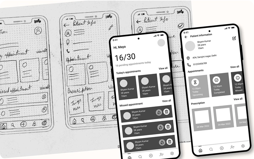 Visualising and planing the solution with wireframes of the app in paper and figma